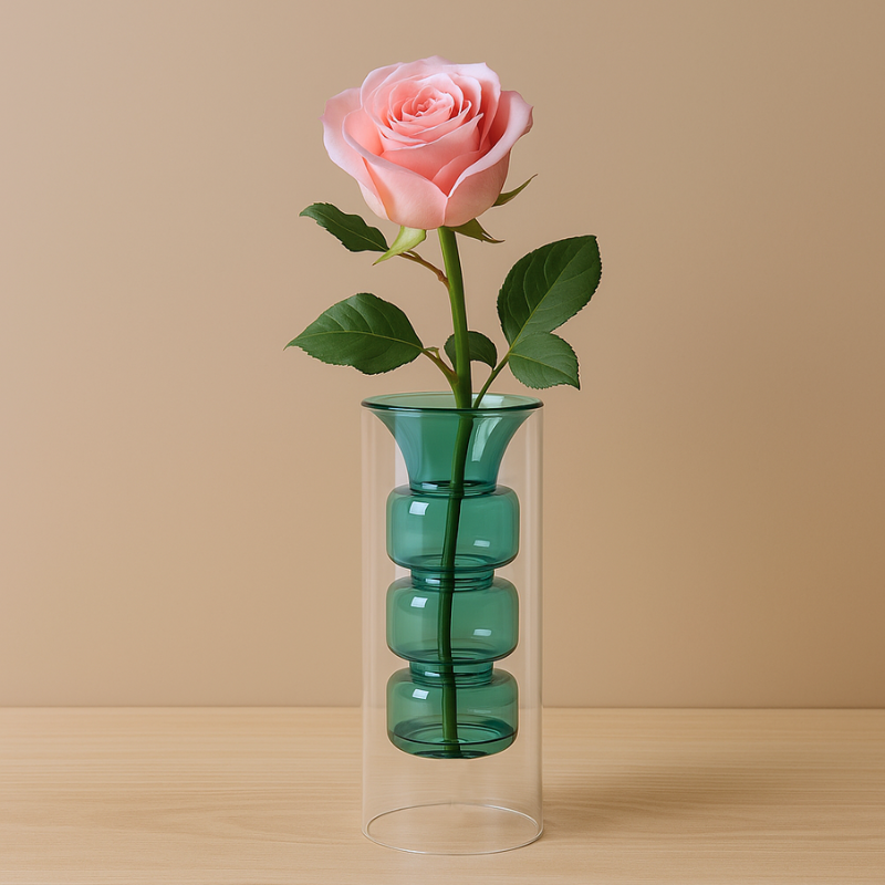 Transforma cualquier rincón en una pequeña galería. Cada uno de estos floreros combina una campana transparente con un florero interior fabricado en borosilicato, creando una sensación de profundidad y movimiento. Su diseño es ideal para decorar con flores de tallo largo o corto, ramas o incluso propagar plantas en agua.