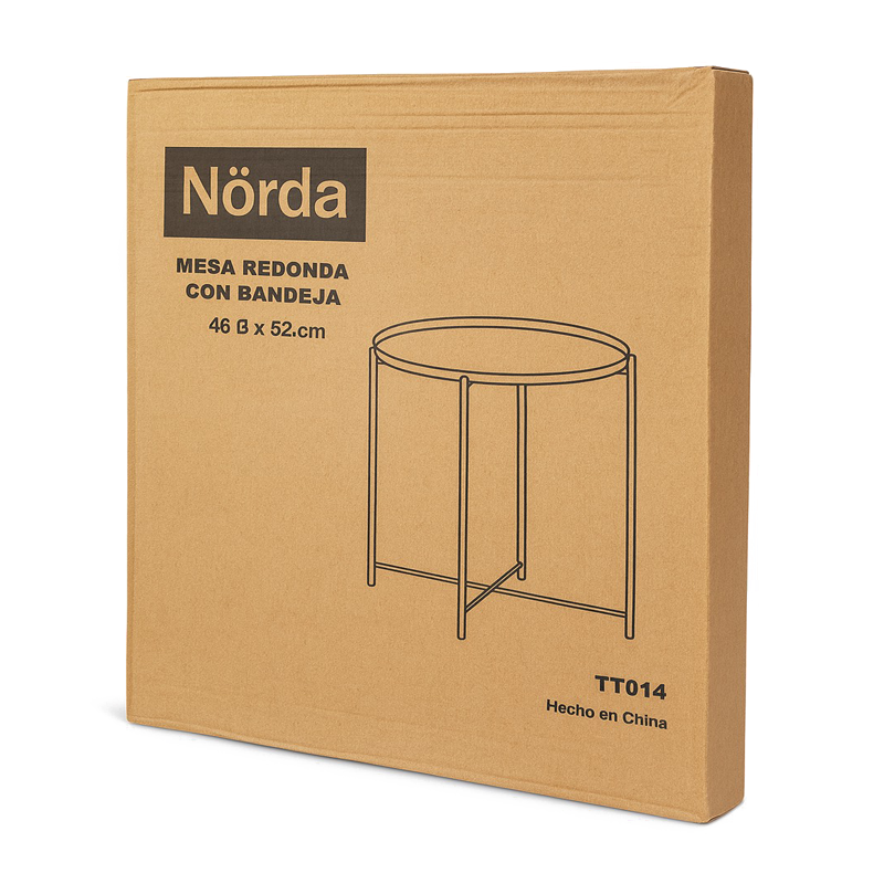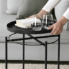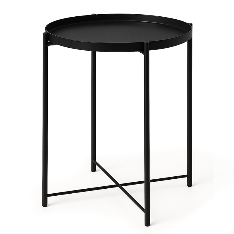 Mesa auxiliar ligera y práctica. Está fabricada en metal laqueado con pintura en polvo, lo que la hace resistente y fácil de limpiar. La bandeja superior es desmontable.