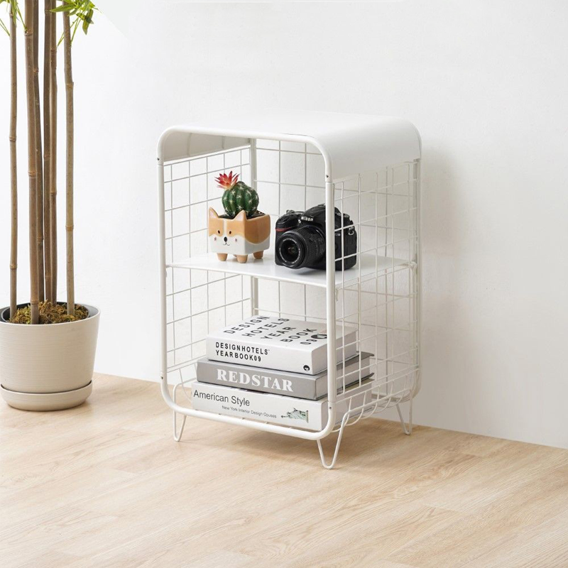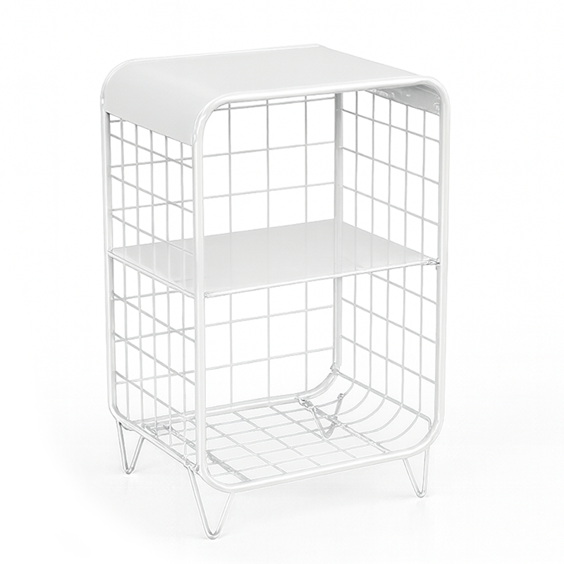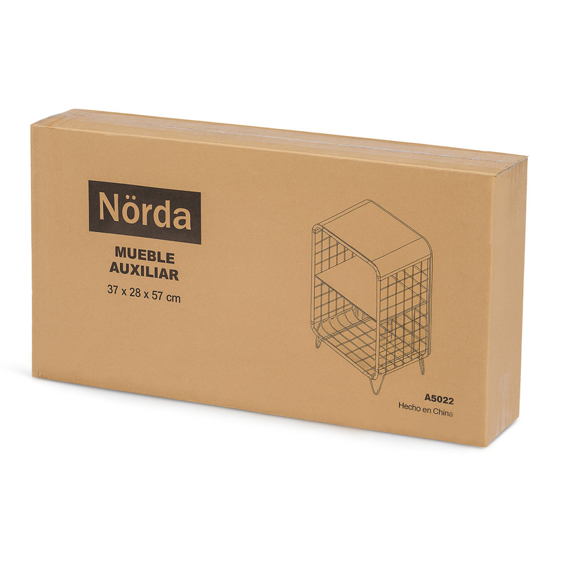 Mueble multifunción, fácil y rápido de armar. Está fabricado en metal laqueado con pintura en polvo y se puede regular la altura del estante. Su diseño es compacto y sólido, con patas y superficie estables para apoyar todo tipo de cosas.