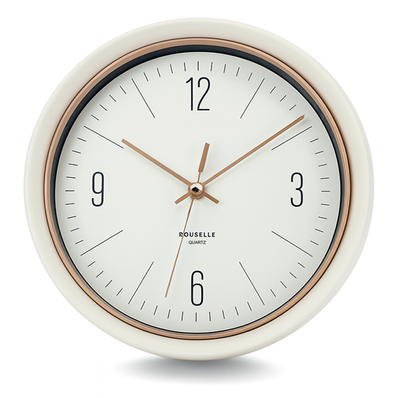 Este reloj de pared tiene el equilibrio perfecto entre elegancia moderna minimalista y el diseño retro japonés. Está fabricado en plástico reforzado y su cubierta es de cristal. Tiene un mecanismo de quartz alimentado por una pila AA que hace que las manecillas se muevan de manera precisa y silenciosa.