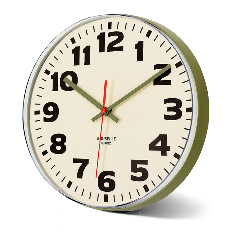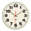 Su estética retro-industrial recuerda a los relojes de estación clásicos y se hace notar en cualquier espacio. Tiene armazón de plástico reforzado, recubierta de acrílico y sus números de gran tamaño aseguran que puedas verlo a la distancia. Funciona con un mecanismo de quartz alimentado por una pila AA, que garantiza una marcha precisa con movimiento fluido y sin molestos tic tacs.