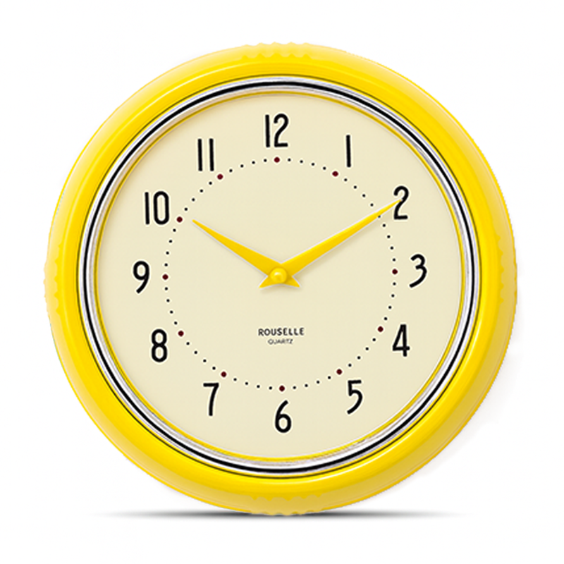 Su diseño inspirado en los mágicos años 50 cuenta con un sofisticado sistema de funcionamiento quartz, alimentado por una pila AA. Sus manecillas se mueven de manera fluida y silenciosa. Está fabricado en plástico reforzado y tiene un acabado metálico que le da un aspecto delicado y nostálgico.