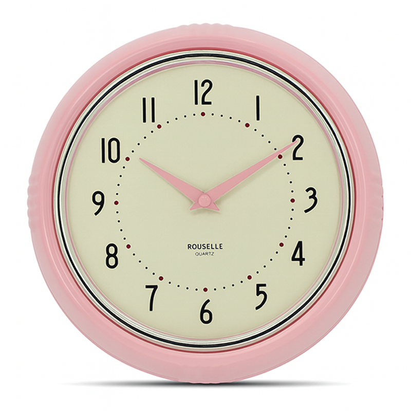 Su diseño inspirado en los mágicos años 50 cuenta con un sofisticado sistema de funcionamiento quartz, alimentado por una pila AA. Sus manecillas se mueven de manera fluida y silenciosa. Está fabricado en plástico reforzado y tiene un acabado metálico que le da un aspecto delicado y nostálgico.