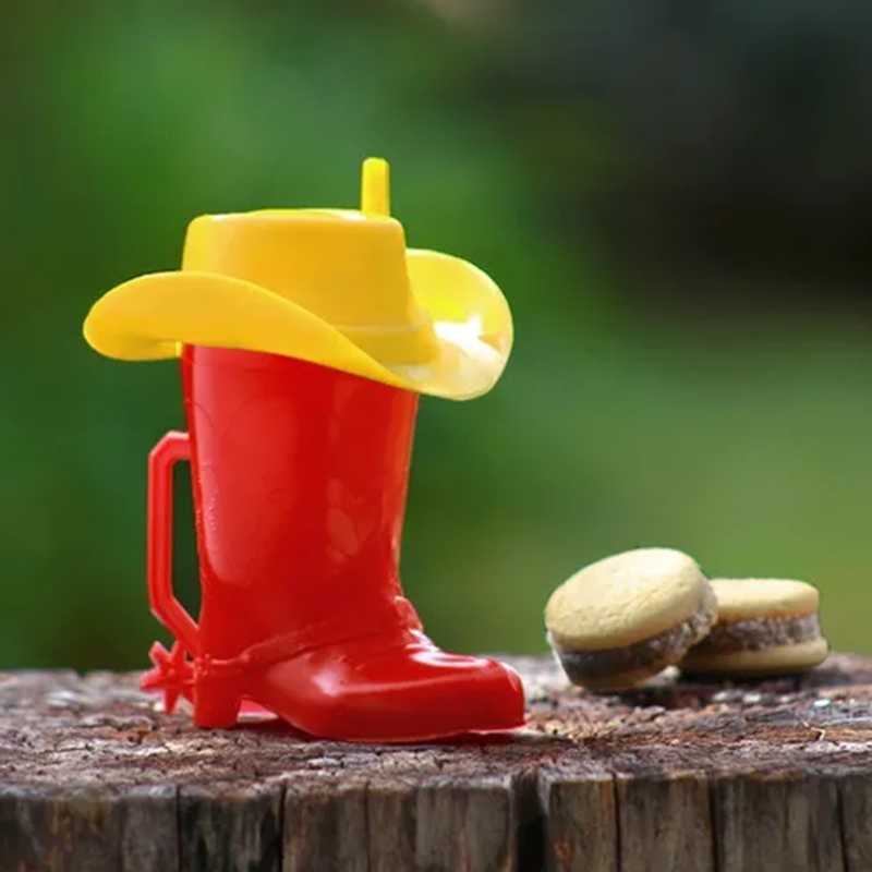 Vasito con forma de bota vaquera, ideal para decorar o servir postres. Su diseño retro y colores suaves aportan un toque nostálgico y original a tu mesa.”